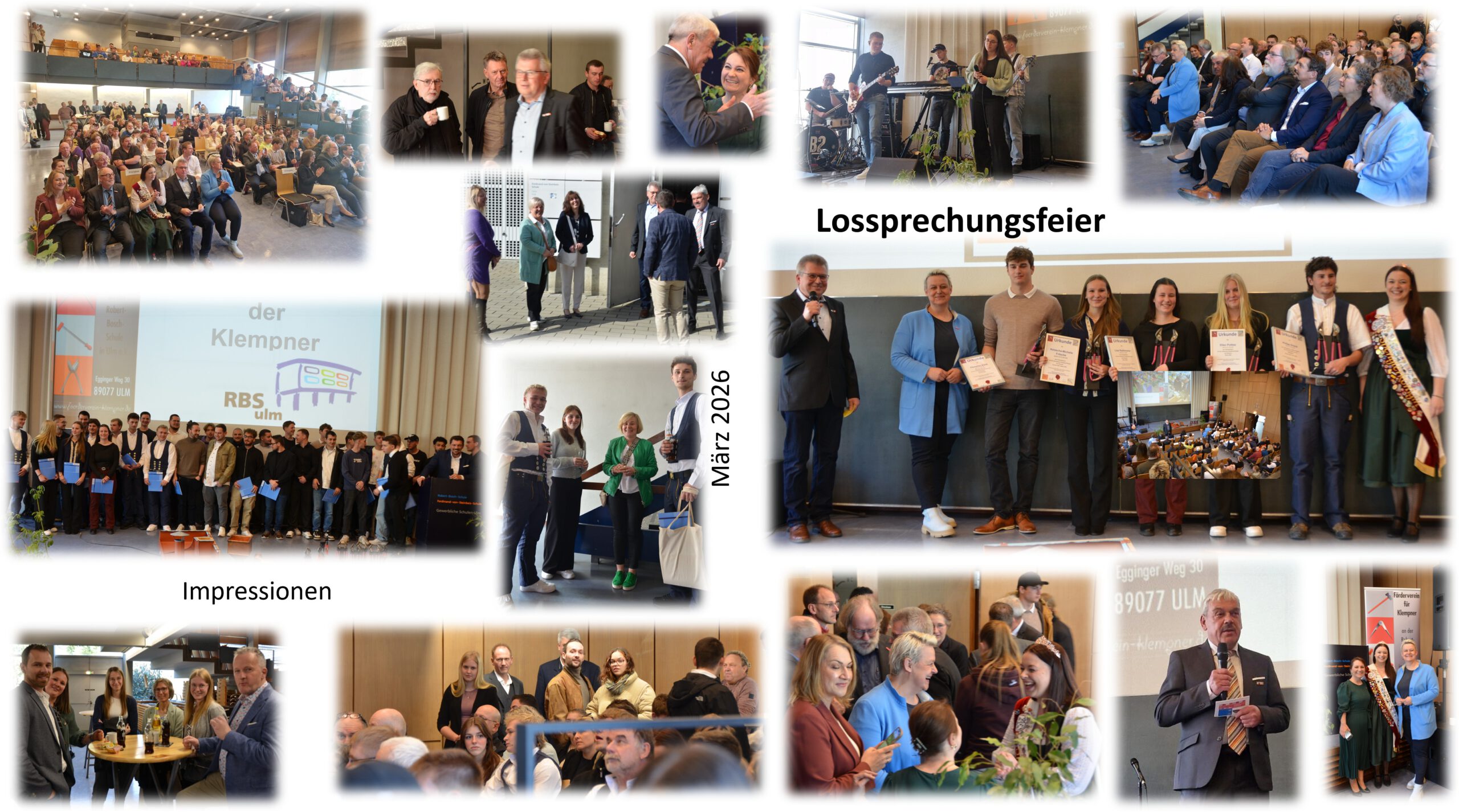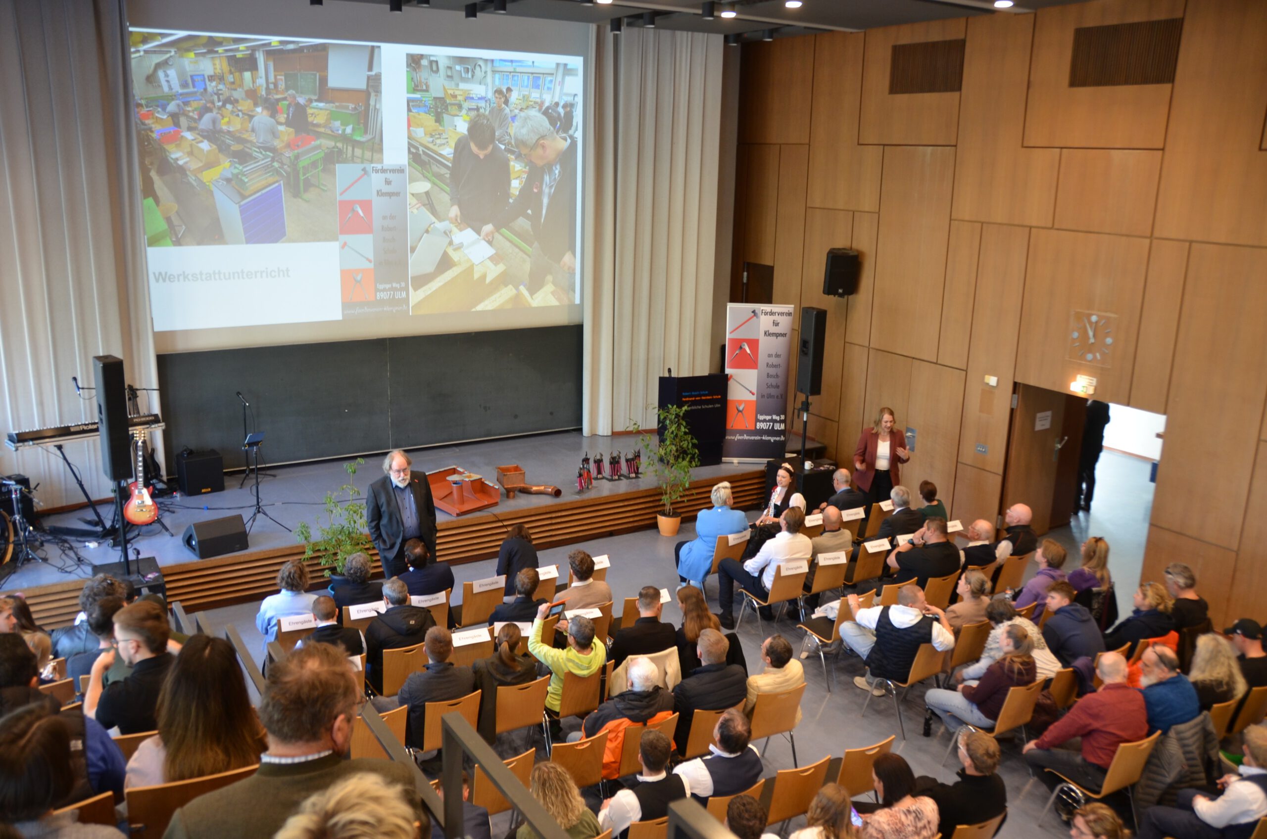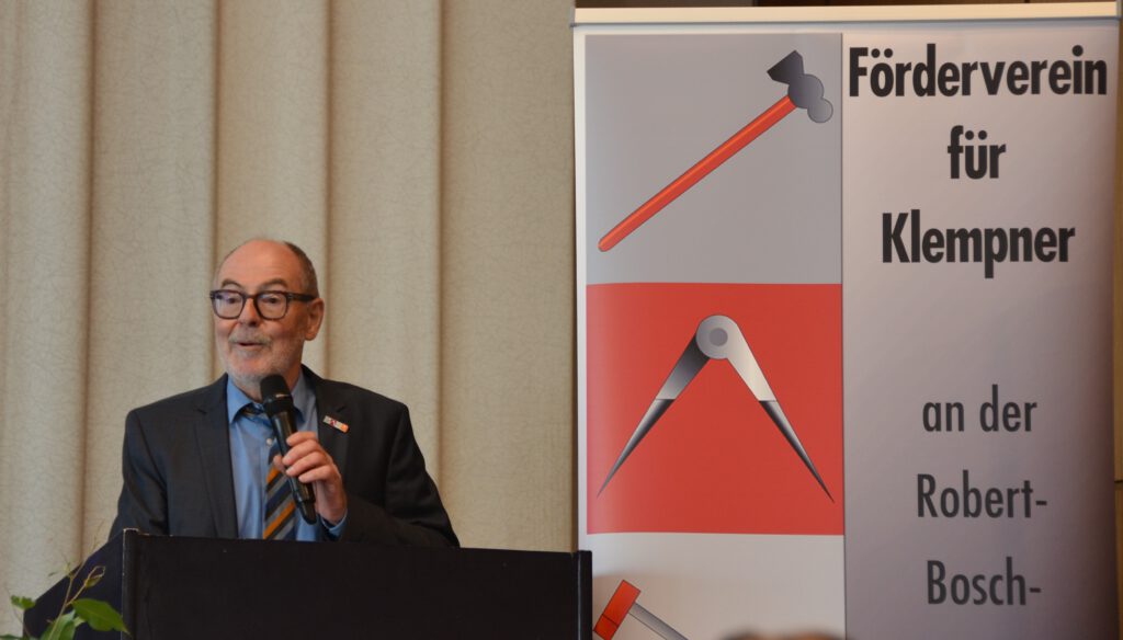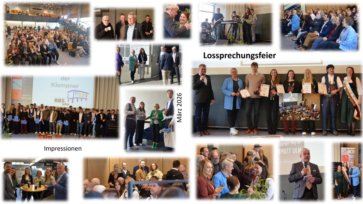 Vorsitzender Jürgen Pflanz begrüßt seine 170 Gäste in der Aula der RBS Ulmdie Band Beliefe two „B2“ rockt die Aula in StimmungGroßartige Gespräche vor Beginn der Feierlichkeiten gehören zum ProgrammVorab war eine Präsentation über die Prüfungsabläufe Sommer 2025 und Winter 2026 sowie unseren Kursen zu sehenFestredner OStDir. i.R. Gerhard Braunsteffer kennt die Probleme im Handwerk. „Wir brauchen keine weiteren Influenzer“ Fotos gibts genug… Was wir brauchen sind die Handwerker, die das herstellen können was fotografiert wird.“Gerhard Braunsteffer weiß als ehemaliger Schulleiter, was diesen Beruf des Klempners soooo interessant macht !